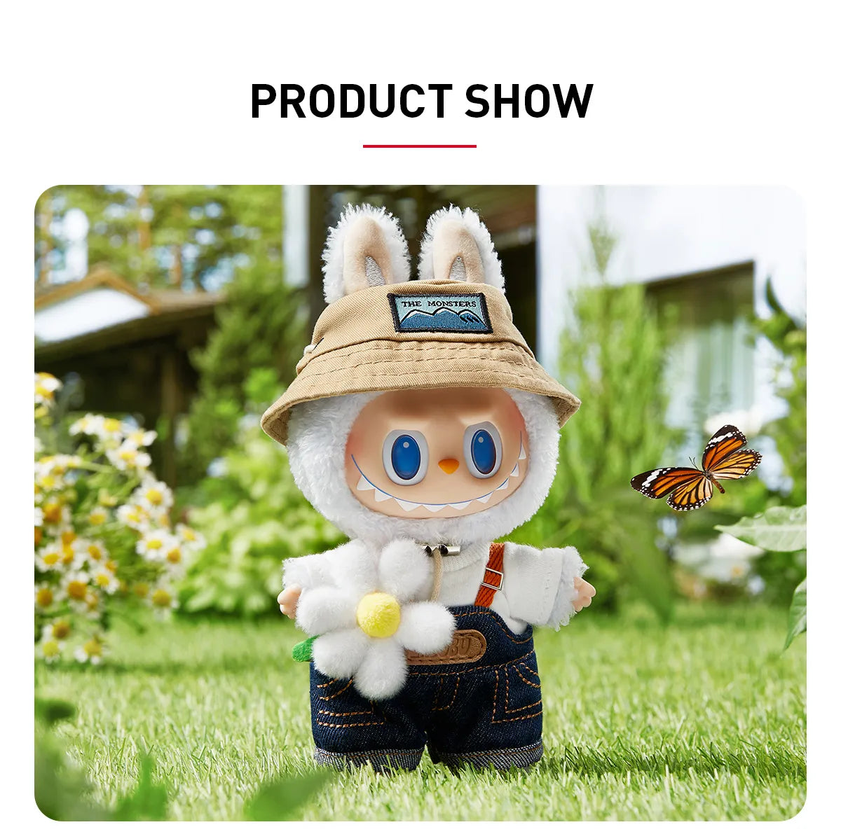 Explore the outdoors with THE MONSTERS – FALL IN WILD Series (Vinyl Plush Doll Pendant). Ranger-style hat, denim overalls and a cute daisy detail—perfect for bags, keys or a cozy shelf display.
